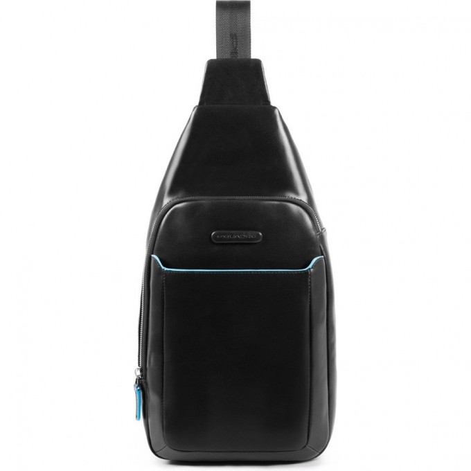 Стильный кожаный рюкзак с одной лямкой из флагманской коллекции Piquadro Blue Square. Изготовлен из высококачественной гладкой телячьей кожи с фирменной голубой окантовкой.